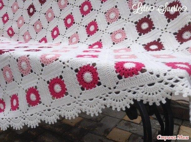 Размер подушки 50 на 50 см плюс кайма32 мотива Размер пледа 2,05 м на 1,45 м. Использовала 176 мотивов - 11 на 16!