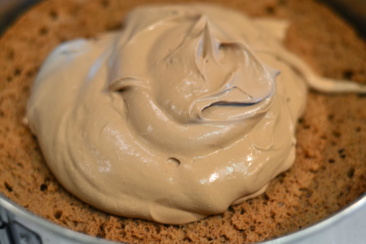 Готовим мусс. Замочить желатин в прохладной воде (35-40 мл). Дать ему набухнуть на минут 5. Затем подогреть,не кипятить до растворения крупинок,процедить через марлю и остудить. Взбить сливки до мягких пиков,добавить струйкой,не переставая взбивать сгущенное молоко у меня ушло чуть меньше половины банки (1 банка 380 г), затем влить желатин, взбить еще пару минут. Мусс готов. Достать торт из холодильника, вылить мусс и отправить снова в холодильник до застывания мусса и пропитки тортика.