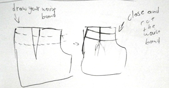 Вытянуть на поясе, закройте выточки и сократить