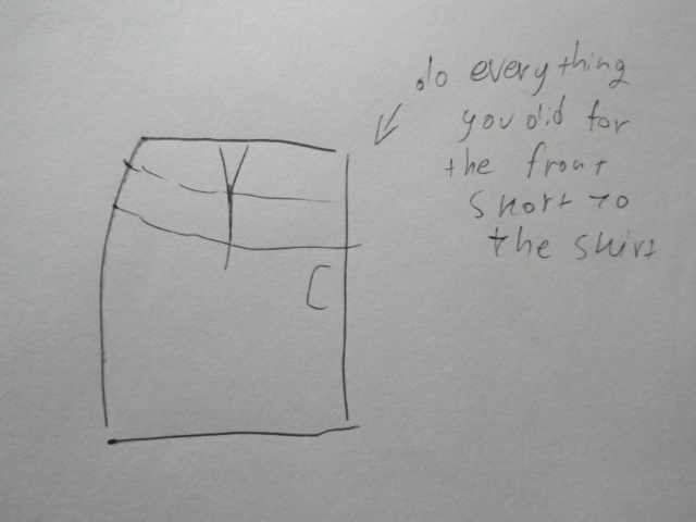 Затем положите кусок переднего Skort правой стороной к себе и поместить