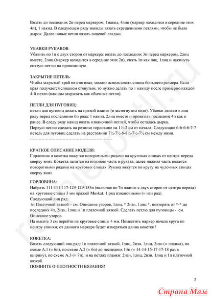 Жакет с круглой ажурной кокеткой узором с листьями вяжется по кругу сверху вниз без швов из хлопковой пряжи