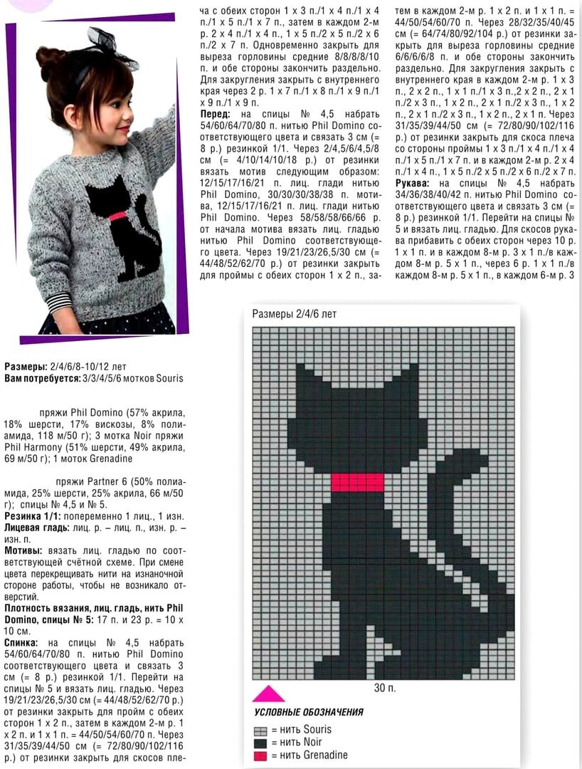 Дневник Свитер с кошкой для девочки спицами | Винни-пуша - Дневник Винни-пуша |