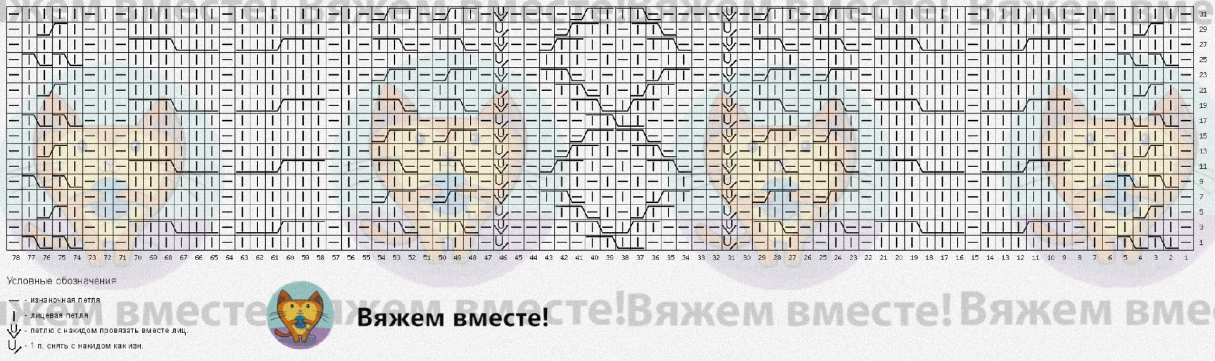Схема вязания дана ниже, на ней полная ширина детали переда от края до края.