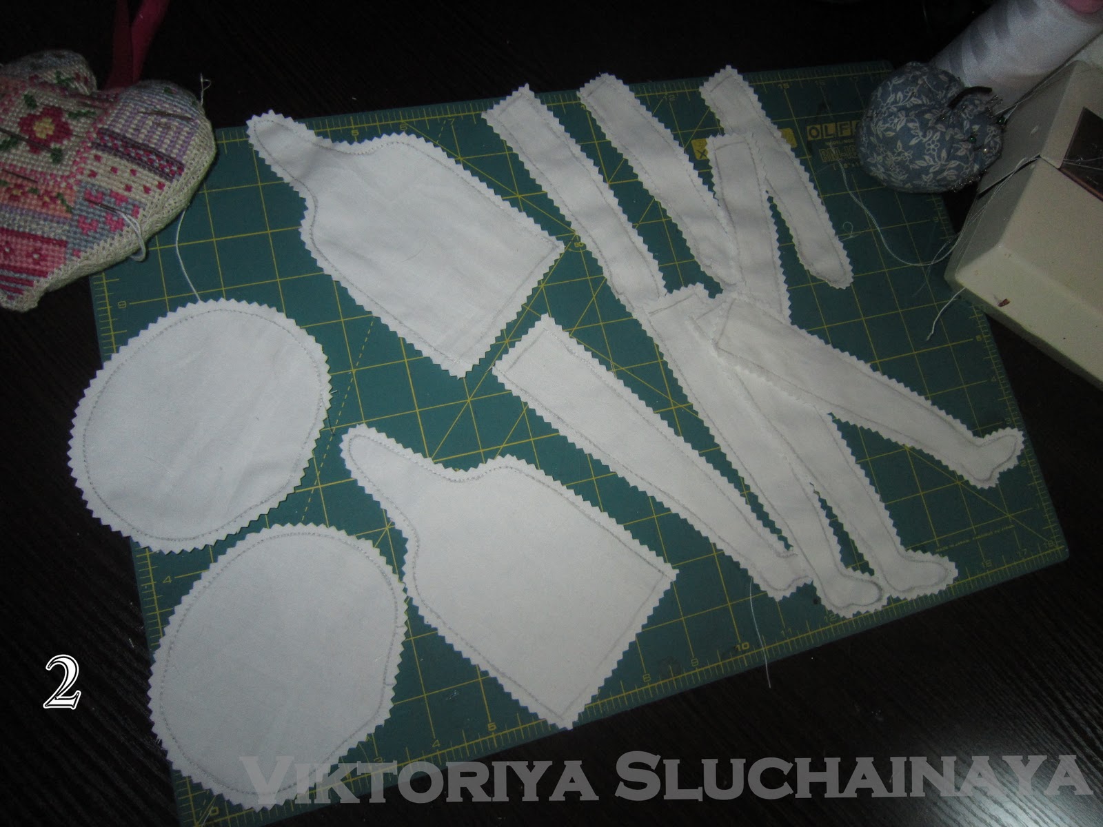 Прострачиваем,вырезаем.Лучше использовать ножницы зиг-заг,тогда при набивке получаются красивые формы=) |