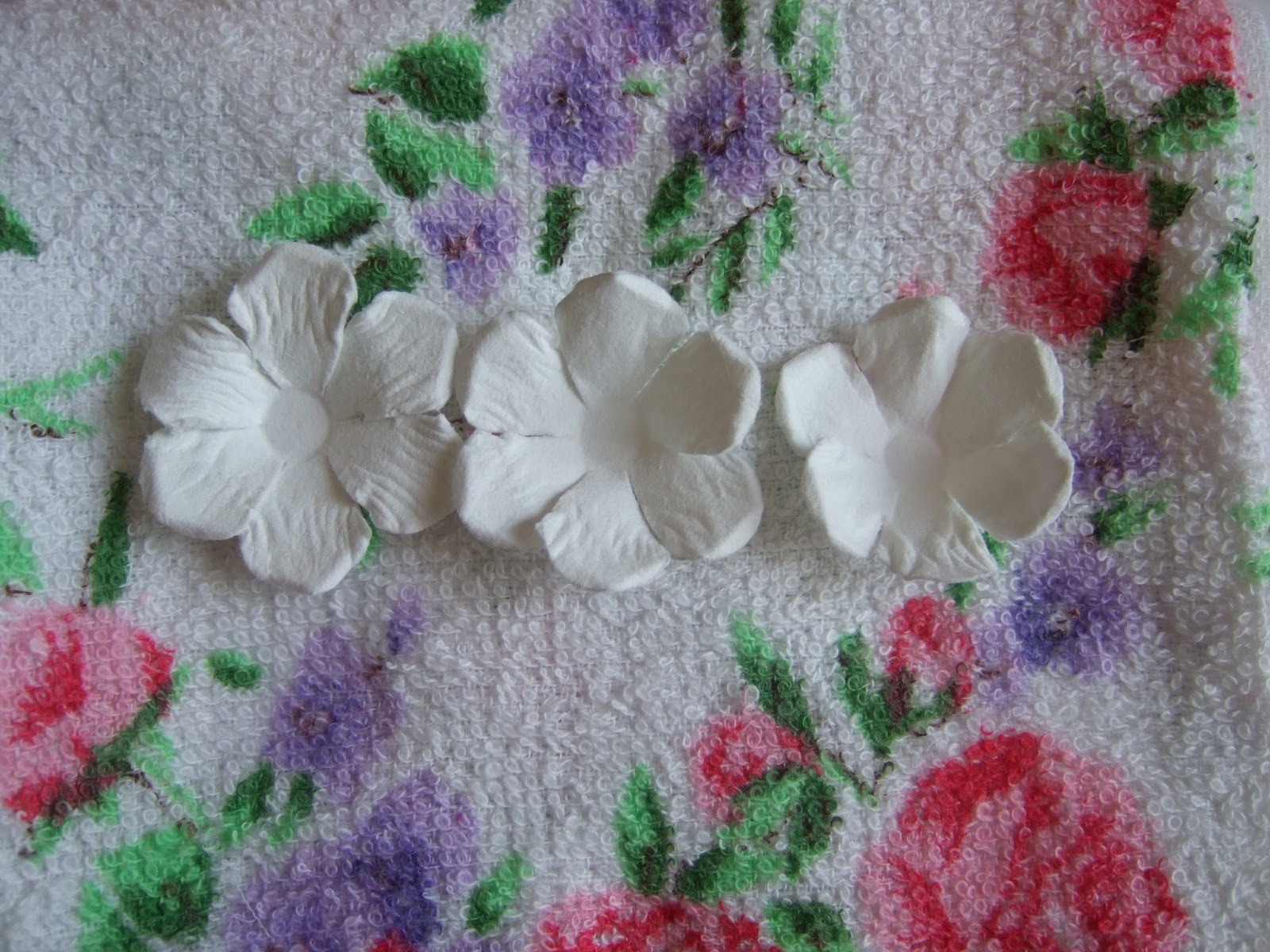 Четвертую, пятую и шестую детали увлажняем, тисним и на полотенце поочередно придавливаем инструментом центр деталей, чтобы лепестки поднялись