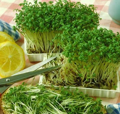 Пряный и слегка островатый кресс-салат - источник многих полезных веществ, он улучшает пищеварение, усиливает аппетит, оказывает противомикробное действие и снижает давление. Несколько слоев марли, смоченной водой,- достаточная питательная среда для его семян.
