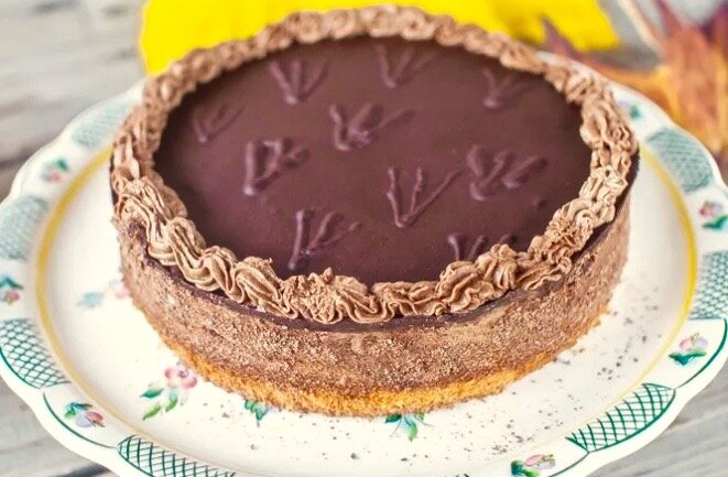 Остальной шоколад нужно натереть на терке и обсыпать им бока торта. Отложенный для украшения крем нужно отсадить по краю торта в виде красивого бортика. Торт нужно дополнительно охладить в течение 30 минут. И вы можете подавать его к столу.