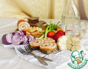 Я к вам с салом. Просто и вкусно, а на вид – дорого и изысканно! Идея также взята из программы "Все буде смачно". За фигуру не бойтесь, если знать меру. В день 20-30 г сала - для фигуры не вредно. А для организма очень полезно. Не просто так, ведь, сало входило в рацион, который врачи предписывали Брежневу. Так что, готовим, едим сами, угощаем родных и друзей, но без фанатизма :) ПыСы: для тех, кто будет недоволен сервировкой на газетке, отвечаю - это не газета, а салфетка с таким принтом. Так что, с продуктами - все в порядке :)