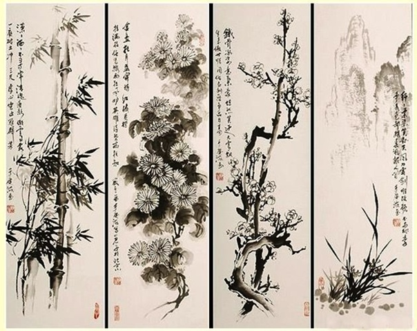 "Четыре благородных господина" (орхидея, бамбук, хризантема и слива)