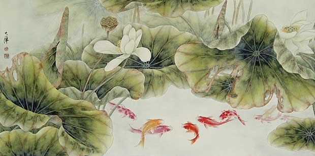 Например, картины пишутся на шелке или тонкой бумаге. Главную роль играют линии, а не мазки. Основные цвета: черный для того, чтобы наложить тени, и зеленый для насыщенности изображения. Оттенки нежные, но ясные.