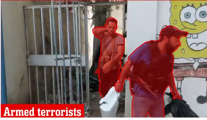 Начальная школа под эгидой UNRWA. На стенах рисунки с Губкой Бобом, и тут же рядом бородачи с автоматами и без опознавательных знаков. На другом видео из той же школы террористы тащат тяжелые сумки с оружием и взрывчаткой.