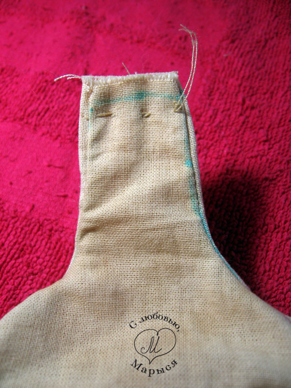 Нам осталось закрыть временным смёточным швом отверстие в области шеи и начинать набивку.