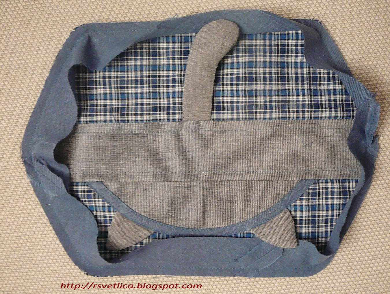 3. Хвост сшила и слегка набила синтепоном . Вшила между боком и дном
