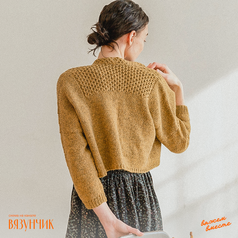 В этой модели используется лишь один простой узор помимо лицевой глади, конечно. Оригинальный кардиган связан также из шерсти с альпака, метраж 110м/50г.