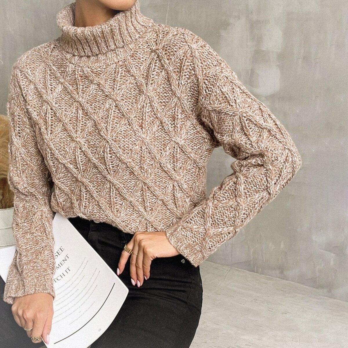 Начну с довольно симпатичной и несложной в исполнении модели, — меланжевого свитера с рельефными ромбами.