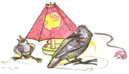 Но Скворец увернулся и, подхватив птенца, перелетел с ним на подоконник.