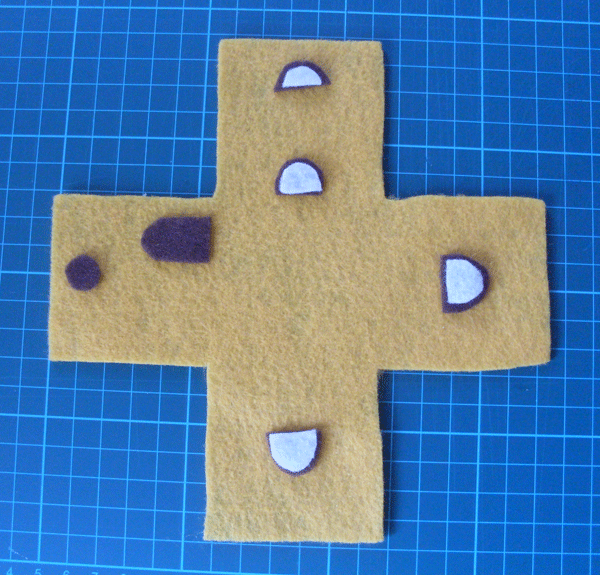 Затем берем фетр и вырезаем его по выкройке, чуть-чуть с припусками на швы