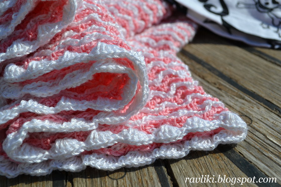 Пояс я обвязала 1 рядом столбиков с накидом и 2 рядами столбиков без накида. В последние два ряда я ввязывала шляпную резинку. Розовая нить-обвязка не обрывалась, а вот резинка - да, она проложена в двух рядах и закреплена отдельно, в целях безопасности, если одна вдруг лопнет, вторая, надеюсь, подстрахует :)