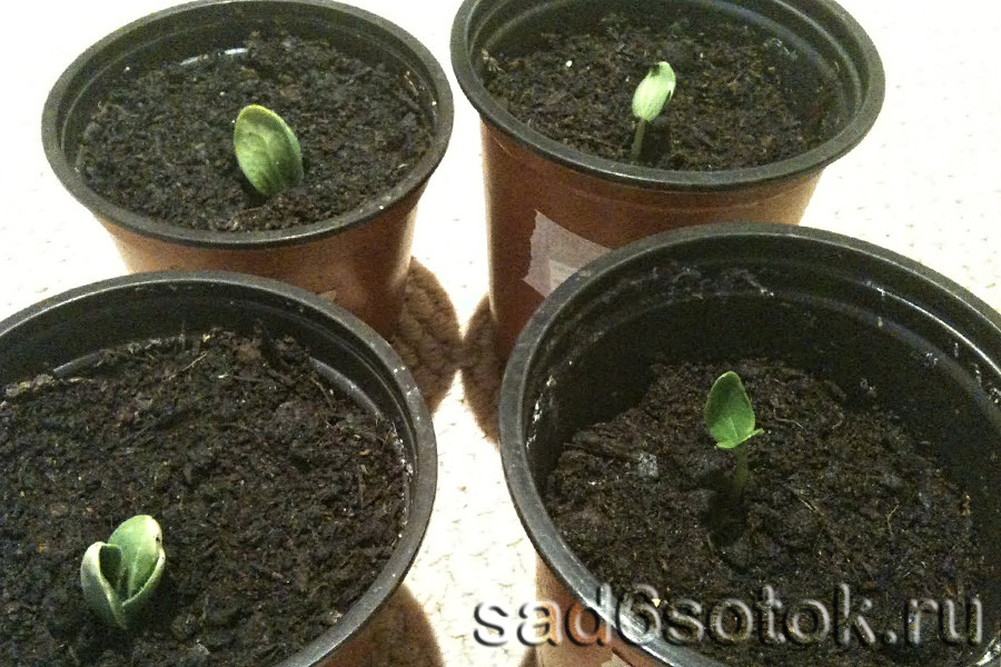 Посадив и полив семена, стаканчики накрывают целлофаном (что исключает засыхание субстрата до появления всходов семян) и помещают их в любое тёплое место (до прорастания всходов свет не нужен посеянным семенам). Необходимо ежедневно заглядывать под пленку, дабы не упустить начала всходов семян. Следом за появлением всходов плёнку снимают и ставят стаканчики с растениями на свет.