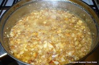перемешайте, еще раз вскипятите и снимите с огня. Дайте чуть остыть.