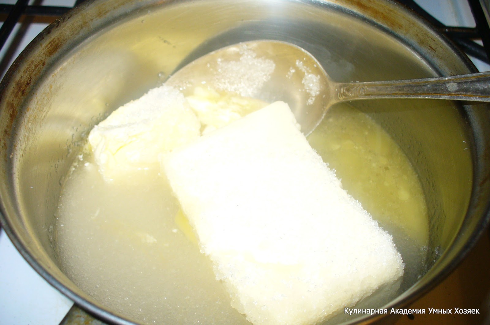 Перемешайте, чтобы масло растопилось, а сахар разошелся.