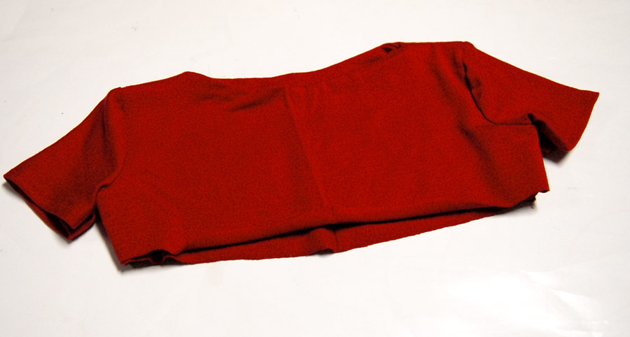 Теперь лиф. Вырезать 2 передние и 2 задние части лифа.Сшейте переднюю и заднюю части вместе в плечах. Затем сшейте их лицевыми сторонами вокруг шеи. Вывернуть на лицевую сторону.