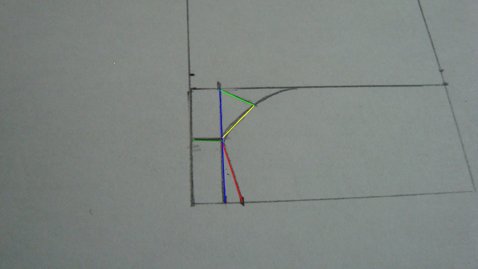и в вертикальной части будет окружность бедра 1/4 + 2 см,