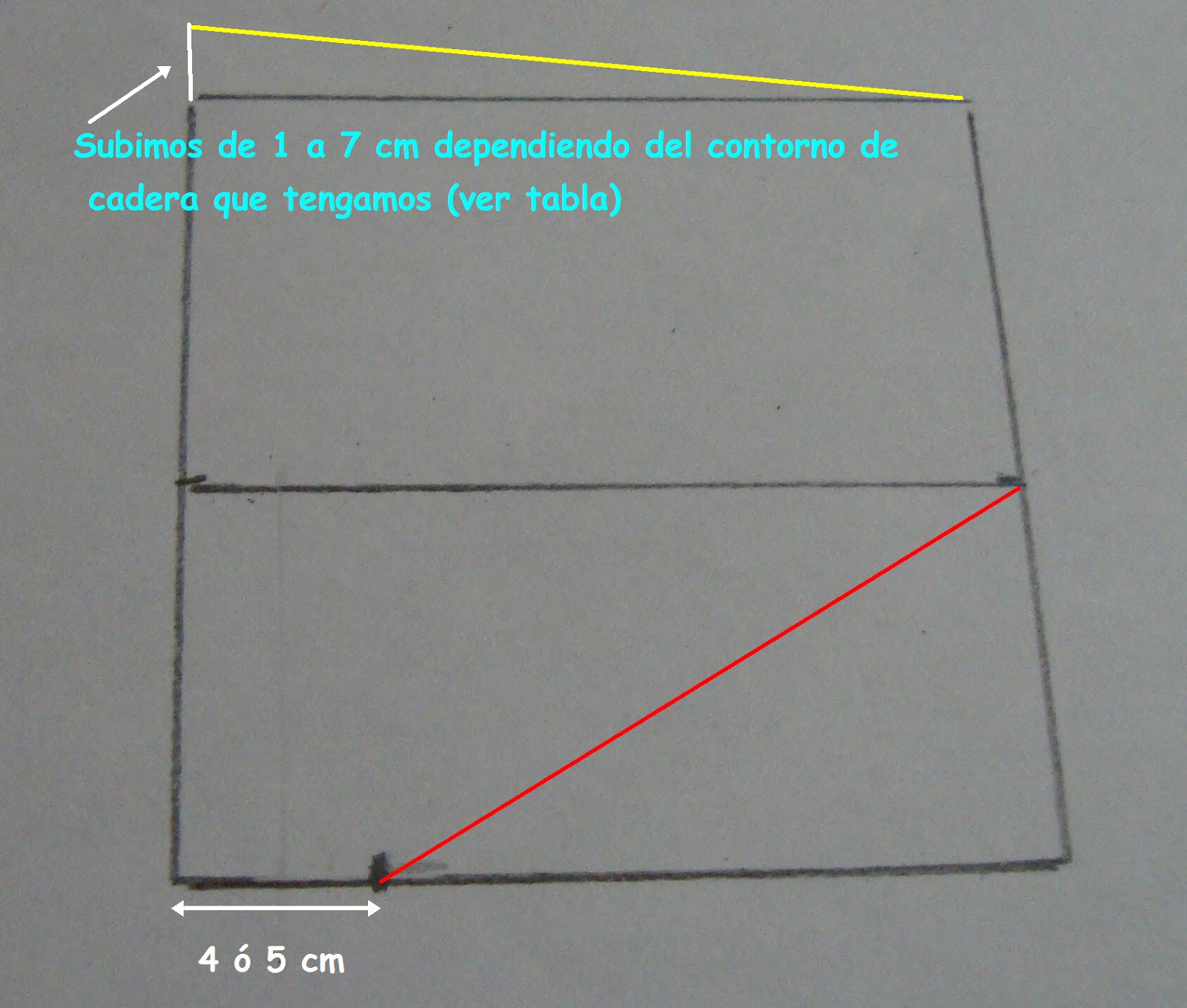 от диагонали к линии, помеченной бедра.