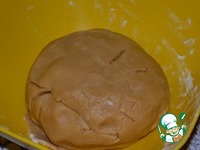 Приготовленную массу перелить в глубокую чашу, добавить варёную сгущёнку, муку и замесить тесто. Оно должно получиться мягкое, нежное и маслянистое. И не липнуть к рукам. |