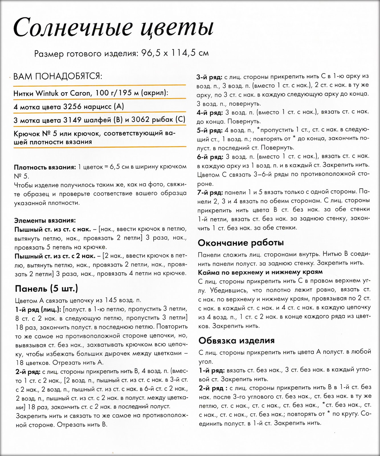 из 4-х полос. Размер больше чем в описании. Для цветочков набирала 214 воздушных петель. немного изменила порядок выполнения столбиков на основном полотне, чтобы они были более широкими. Размер пледа 140 х 175 см.