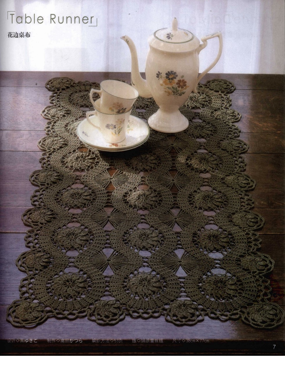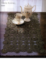 Салфетка-дорожка с элементами брюггского кружева, связанная крючком.
