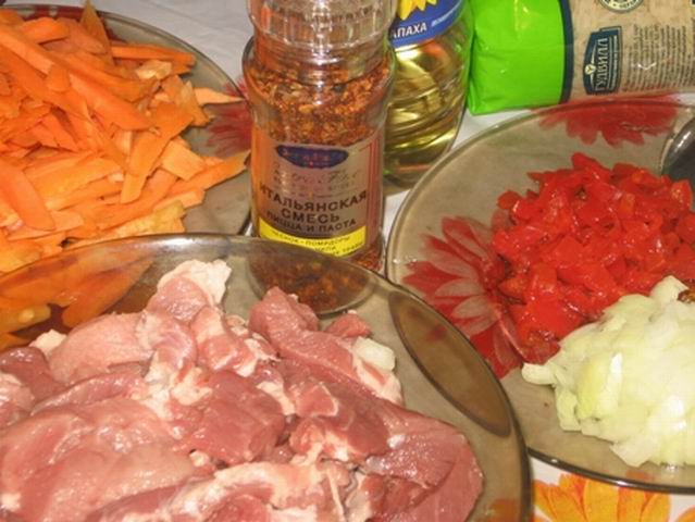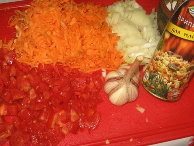 морковь или режем или трём на тёрке, нарезаем мелко лук, перец.