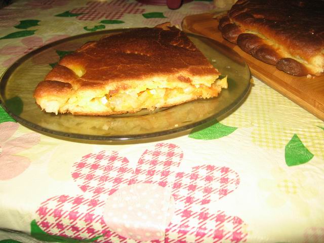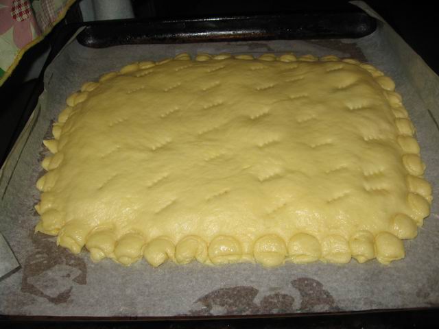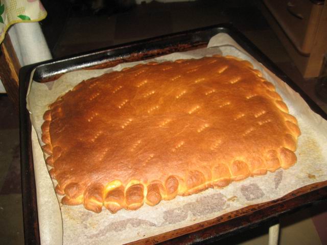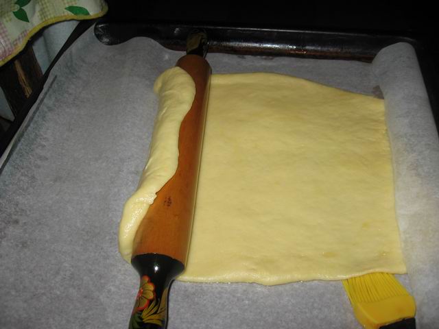 Тесто разделить на 3 части. 2 пойдут для пирога, одна - на рулет, который приготовлю чуть позже.