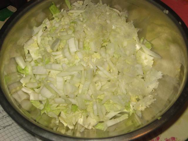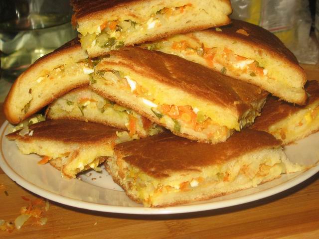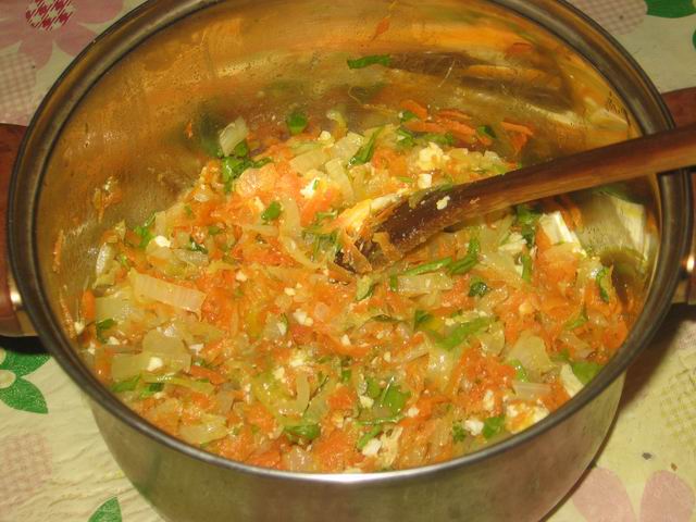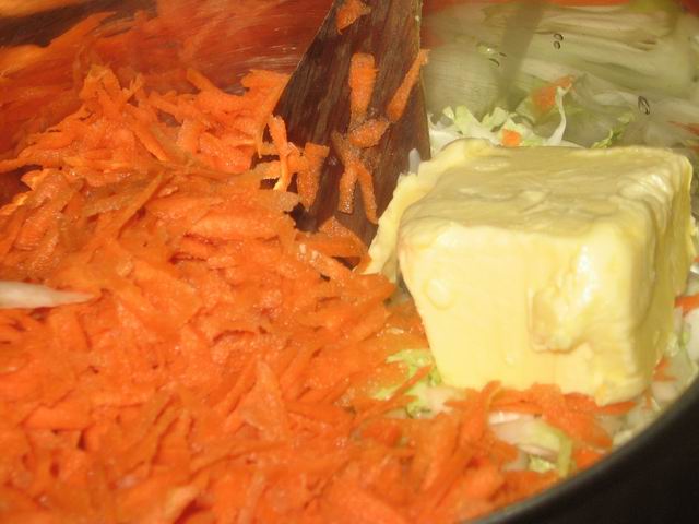Начинка пирога была самая обыкновенная, какую я люблю с детства - морковка и капуста. Причём, морковки столько же, сколько капусты.