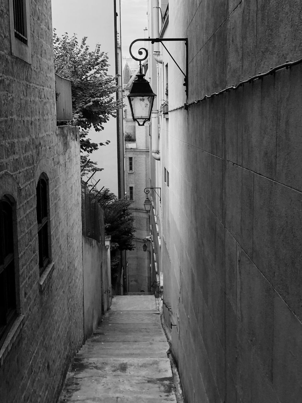 Идите дальше и поднимитесь по узкой лестнице справа и снова окажетесь на улице Рейнуар.