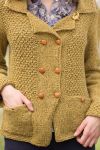 Кардиган силуэта классического жакета, с накладными карманами, двубортной застежкой и отогнутыми манжетами на манер французского рукава.