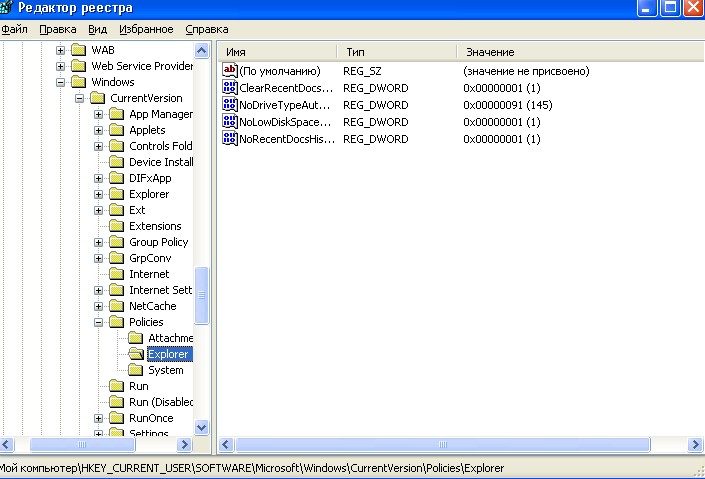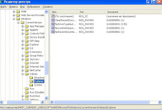 В разделе HKCU\Software\Microsoft\Windows\CurrentVersion\Policies\Explоrer находим