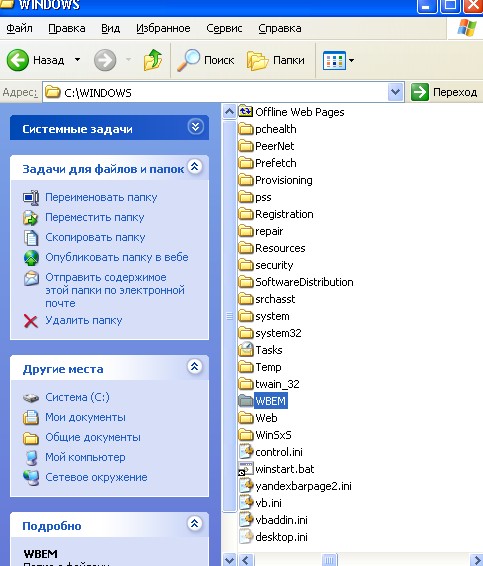 6.Щёлкните правой кнопкой мыши на папке wbem
