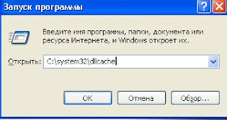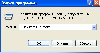 2.В диалоговое окно Открыть ,введите тип C:\system32\dllcache