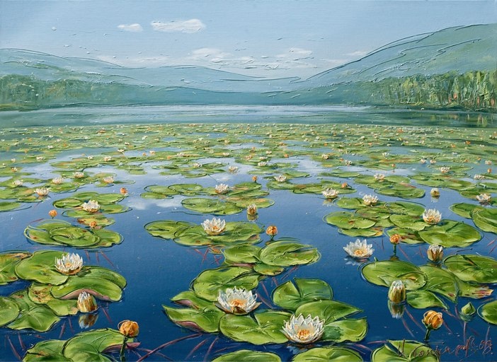 "То, что художник имеет у себя в душе, то он и передаёт на свои полотна. Я сейчас живу в прекрасном, чистом, светлом месте, в предгорьях Восточных Саян, в деревне, где чистый, свежий, прозрачный воздух, где замечательные, прекрасные люди. И, видимо, это настроение, состояние передается в картинах".