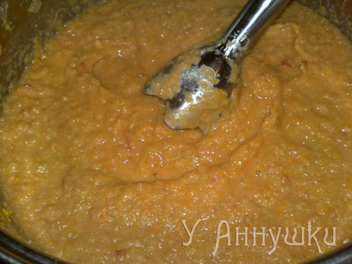 Блендером пюрируйте все овощи в кастрюле до однородного состояния.