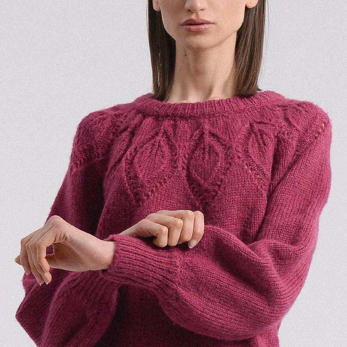 Очень понравился джемпер на круглой кокетке в благородном малиновом оттенке от того же бренда из франции. Модель проста и одновременно прекрасна, подойдёт для поздней осени и зимы.
