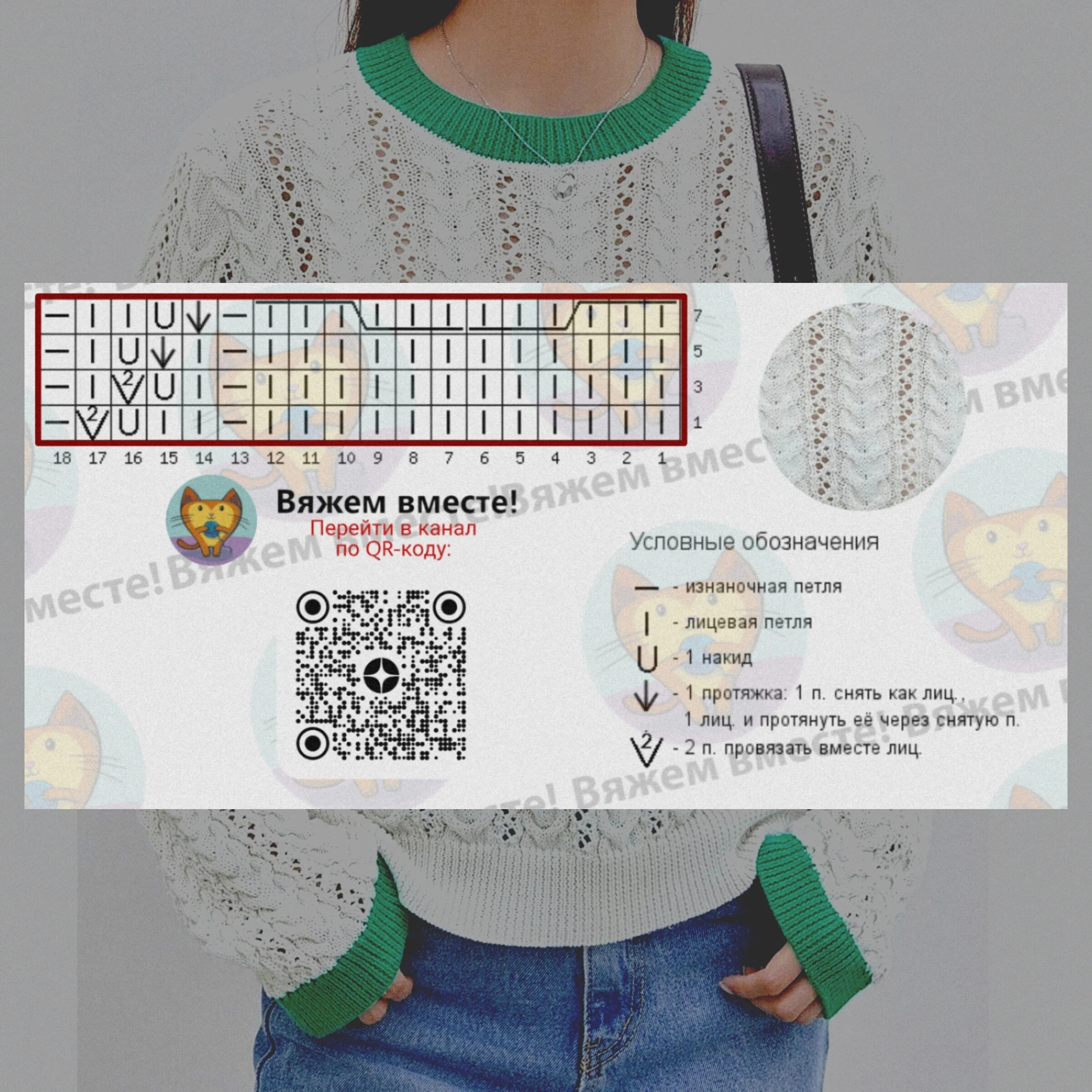 Если задумаете вязать эту модель самостоятельно, то можете воспользоваться схемой узора, которую для вас уже составлена.