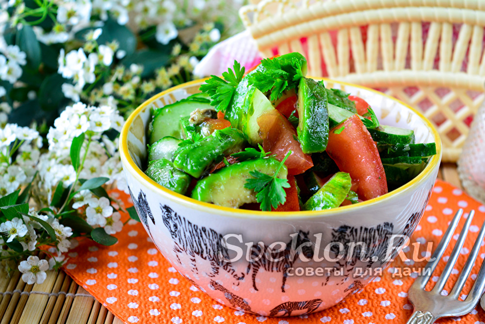 С авокадо можно сочетать множество овощей, ведь сам плод не имеет ярко выраженного вкуса, он не сладкий. Попробуйте приготовить этот салат.