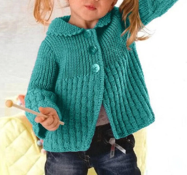 Теплая вязаная кофточка для девочки спицами. Нарядная кофточка для малышки 12 (18) мес.