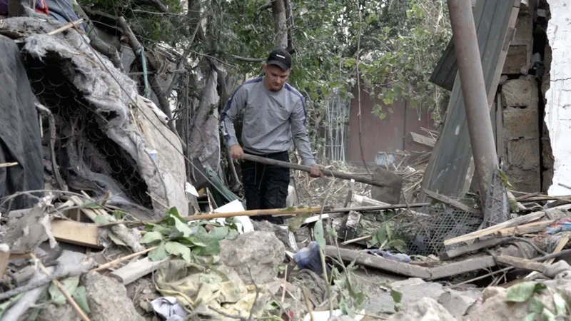 "Все в руках Божих. Що буде, те буде», - каже 67-річна Світлана Харланова, стоячи на порозі свого майже дивом неушкодженого будинку, погладжуючи невелике осколкове поранення в голову, через 4 години після того, як ракета залишила глибокий кратер у її дворі.