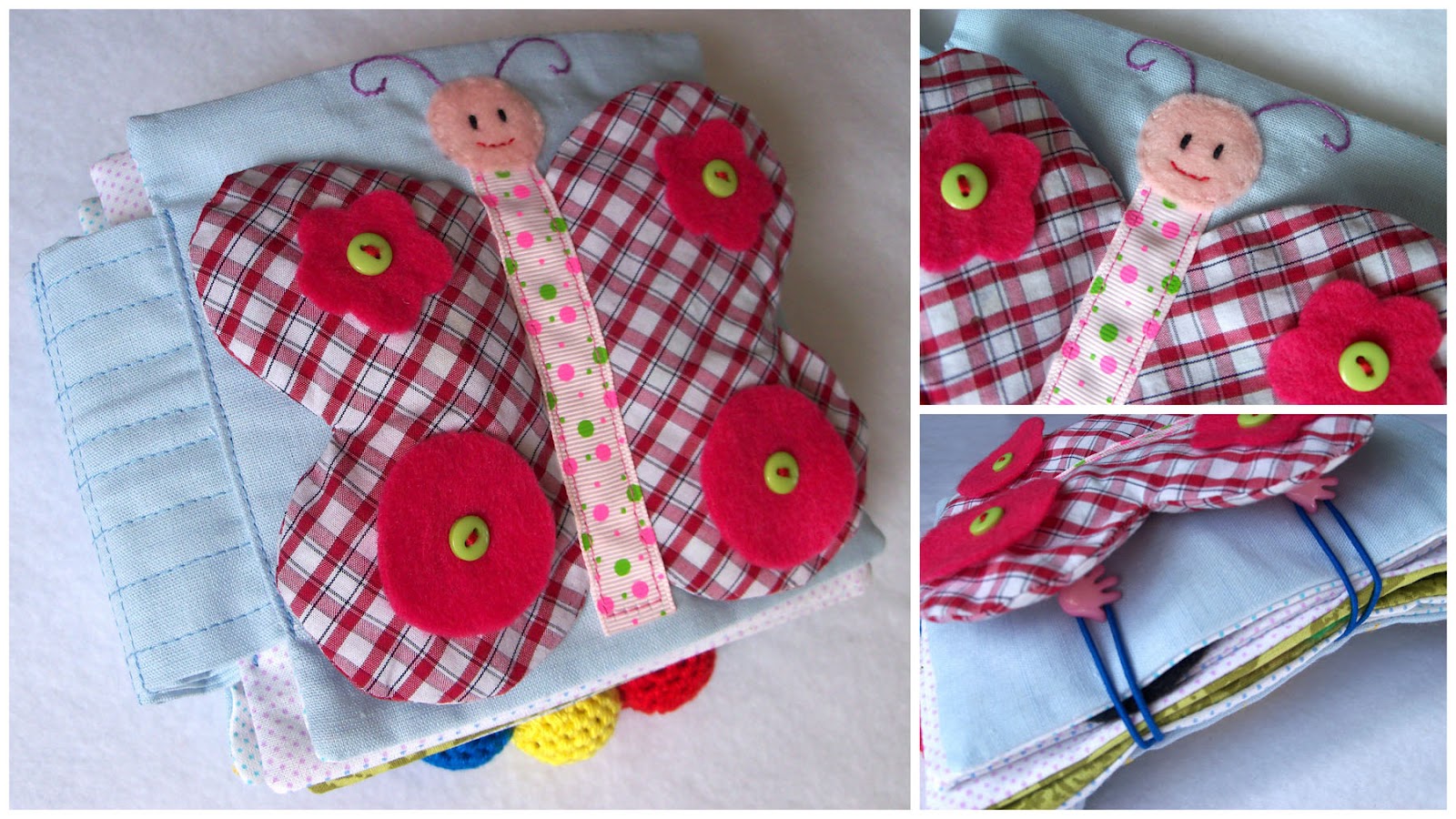На обложке - бабочка шуршит крыльями. Пуговки для дополнительных тактильных ощущений.