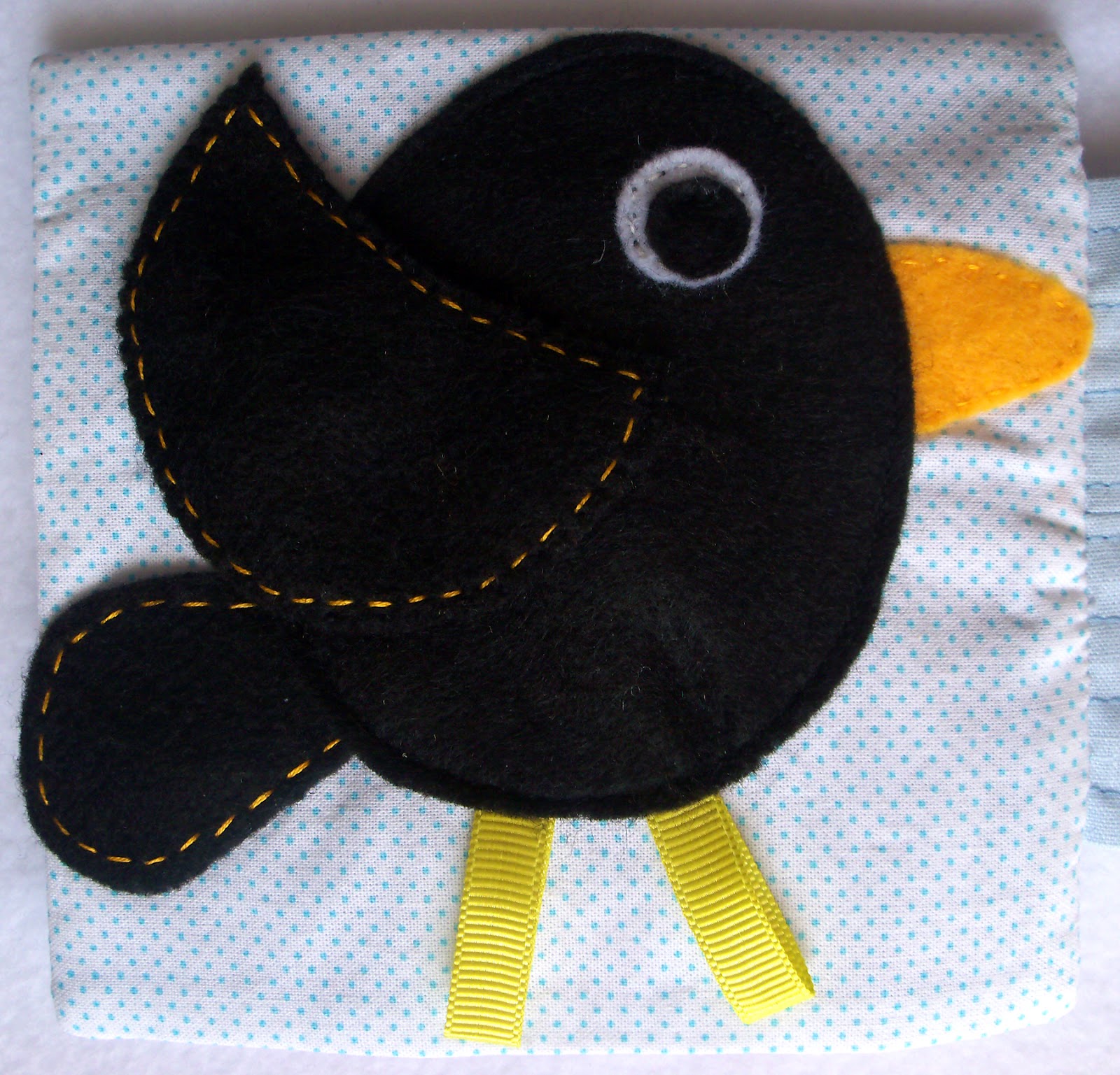 На этой страничке должна была быть ворона. не знаю насколько она у меня получилась :) Зато пищит, можно дергать за крылышко и хвостик. В крылышке зашиты бубенчики.