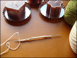 После вязания одного стежка *переместите пряжу вокруг плоского куска дерева или пластика, спереди -назад. Затем нитку нахлестнуть на левую спицу(как накид) и провязать этот накид вместе со следующей петлёй скрещенной (перекрученной). Так бахрома лучше закрепится.