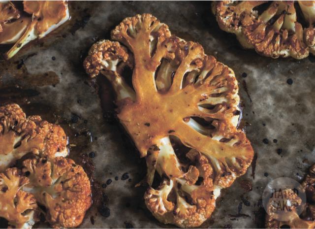 Переложите маринованную цветную капусту на противень и запекайте в разогретой до 180 °C духовке 45–60 минут. Она должна размягчиться изнутри и подрумяниться снаружи.